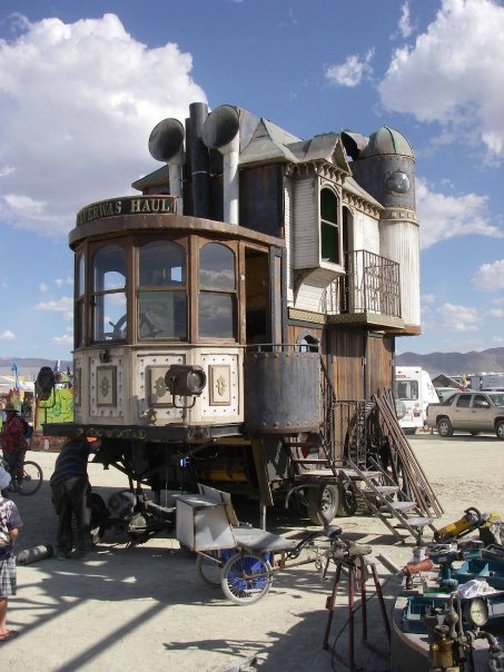 Although it was the most emotionally draining week of my life it was also the best. For the first time in a long time I let myself feel the full spectrum of emotions, totally and unrestrained. I moved from Fear into anger and then grief and finally joy. I don’t think I would have been able to fully experience my joy if I did not have a chance to feel all of the other emotions. Every night I stayed up late jumping from art car to art car, checking out cool scenes and dancing like I was high on crack. The energy and the love of the place were really overwhelming. Everyone I met seemed genuinely happy to see me and wanted to know where I was from and what I was about. The people were friendly, the food was great, the atmosphere was incredible and the weather of course sucked ass. But what do you expect when you throw a party with 35,000 people in the middle of the desert?