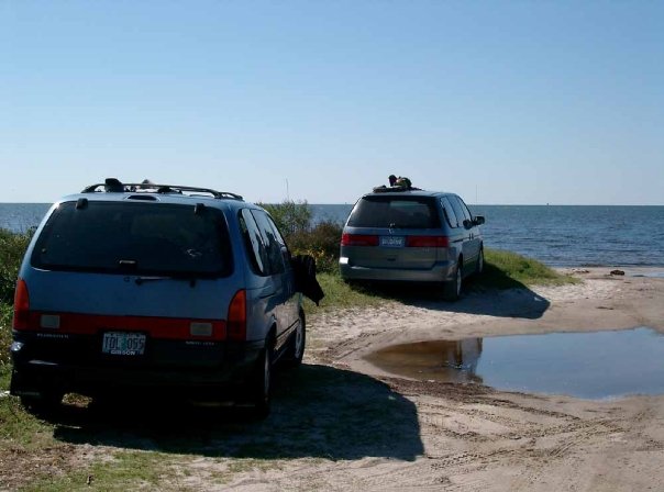 The second night we slept in our vans at the airport a ranger pulled up at around 8:00 AM. Being the good friend I am I took off in my van leaving Greg to fend for himself. Unfortudently the Rangers had tired of giving us warnings and decided to write us our first $150 ticket for ‘camping’ in our vehicles. No amount of pleading or reasoning could save Greg from getting this ticket. At this point it seemed like all the Rangers knew us by name and even the Hatteras Townies were coming up to us and telling us that the Rangers really wanted to nail us again. At that point we started our new plan.